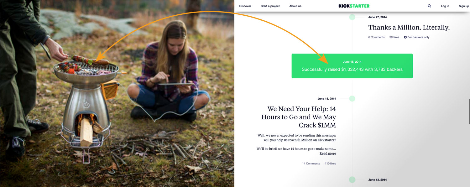 Let’s take a look at BioLite’s success with Kickstarter. BioLite as a company began in 2009, and after a few years in a proof-of-concept, BioLite kicks off their first product by crowdsourcing capital on Kickstarter. Here’s what happened: