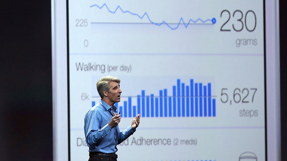 Very casually, Mr. Federighi told the 5000 software developers in the room that Apple’s new Healthkit would let them build health and biometric applications. Just in case the audience wasn’t paying attention, Mr. Federighi told a story of how Apple worked with the Mayo Clinic to help measure their patient’s vital signs and then send essential data to their doctors.