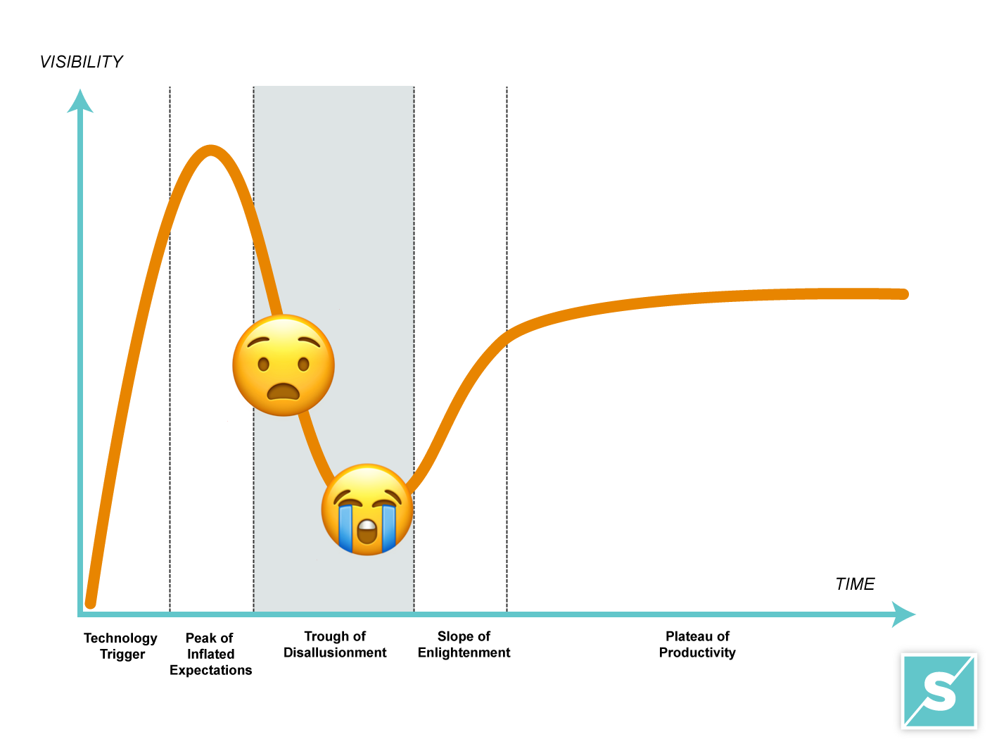 • It’s fun to look around and place tech trends on the Hype Cycle. On any given day, there are 100s of technologies at each part of the cycle. Today, something has reached it’s Peak of Inflated Expectation at the same time a technology has reached the Trough of Disillusionment.
