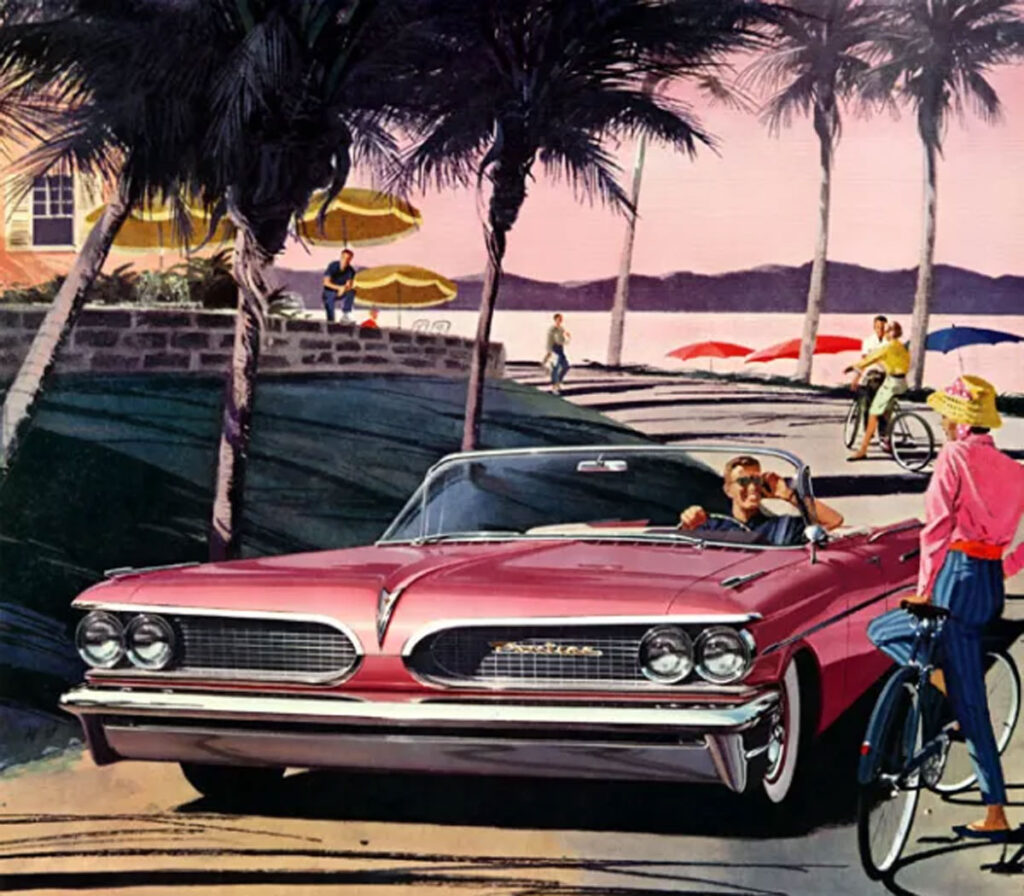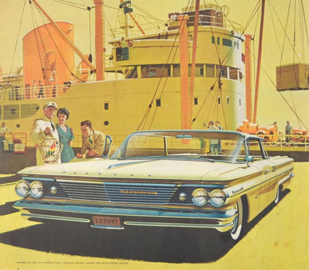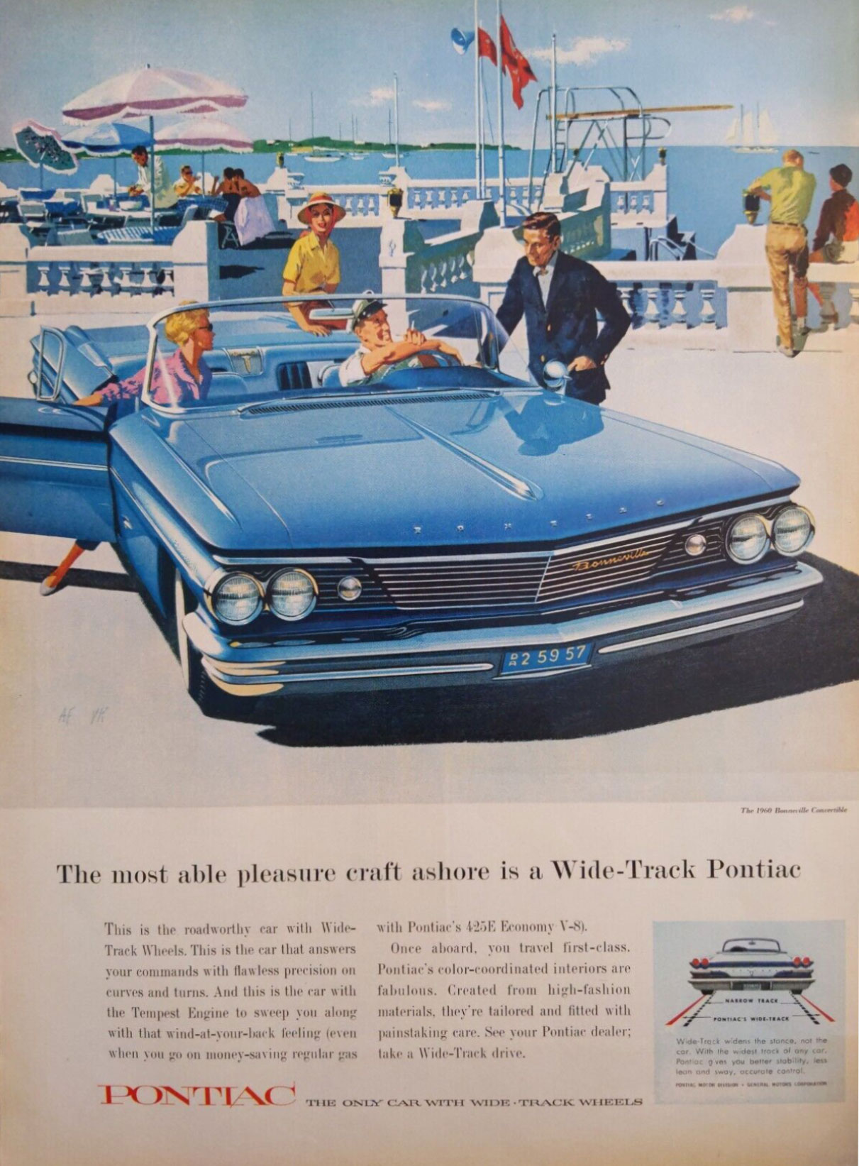 What’s interesting in this ad is they chose sunny colors for the story, but a strong black for the Pontiac itself. You can’t stop looking at it!