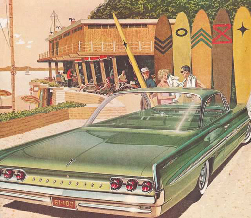Today on the blog I want to share automobile ads from the early 1960s. These are remarkable illustrations, mostly from commercial artists Art Fritz and Van Kauffman. The colors, composition, and subject matter of these ads are so unique to that era. I would encourage you to read this blog slowly and enjoy the details of each ad. It’s lovely!