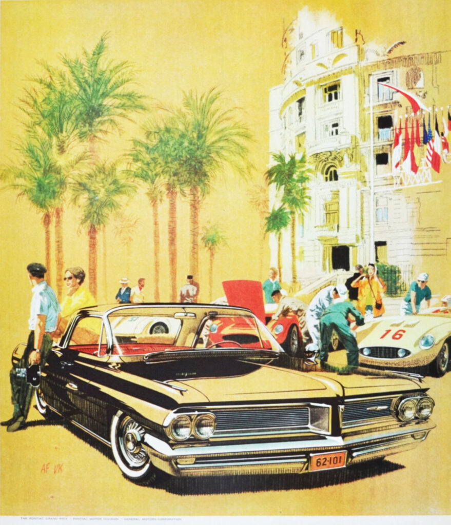 Now let’s look at this same 1962 Pontiac Grand Prix, but this time as the star in a new story. My guess is that the setting here was inspired by the Grand Prix race in Monaco in the South of France. I’ve never been there, Monaco was the setting for a couple of James Bond movies, recently Casino Royal. Plus, the race is called the Grande Prix, just like our car from Pontiac. ?